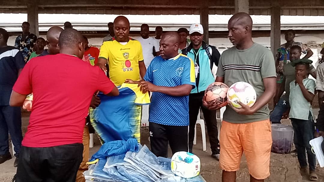 The SW FECAFOOT 1st Vice President and President of Etoke Sports Academy extended his charity after a friendly on Saturday, which pitted Etoke Sports Academy against Tiko United FC, at the Town Green stadium in Tiko.