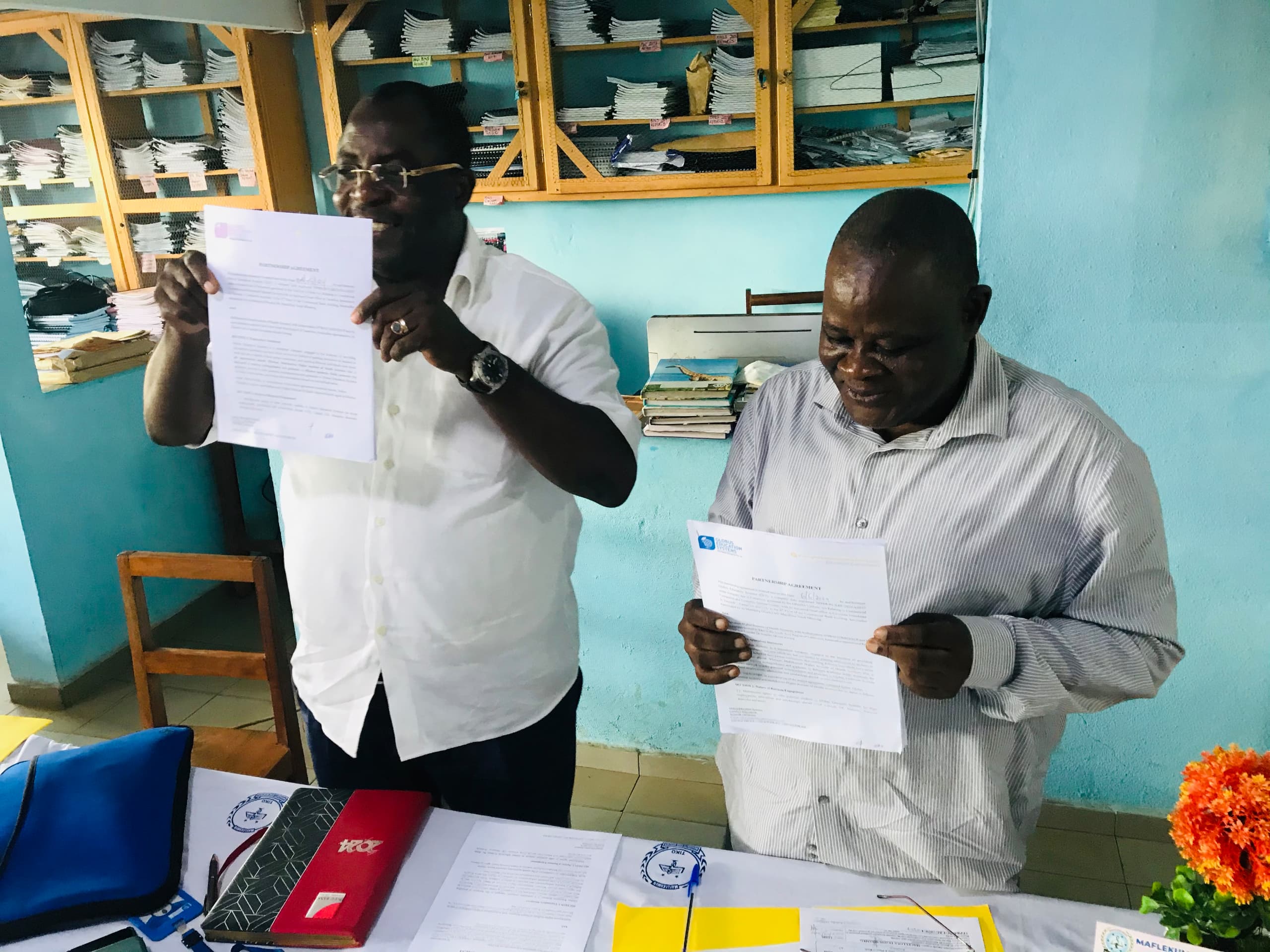 Dr. Anselm Ewang Ekume, the Chief Executive Officer and Founder of Maflekumen, and Mr. Raphael Tchoupi on behalf of Globus Education Systems, inked their pen to advocate for a mutually beneficial agreement that will only propel the education industry.